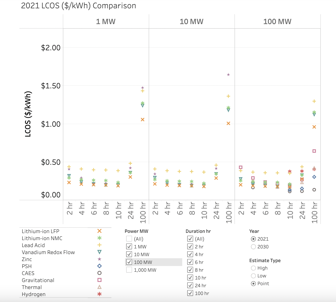 Figure 1: LCOS Analysis by DoE (up to 100MW, ref: https://www.pnnl.gov/lcos-estimates)